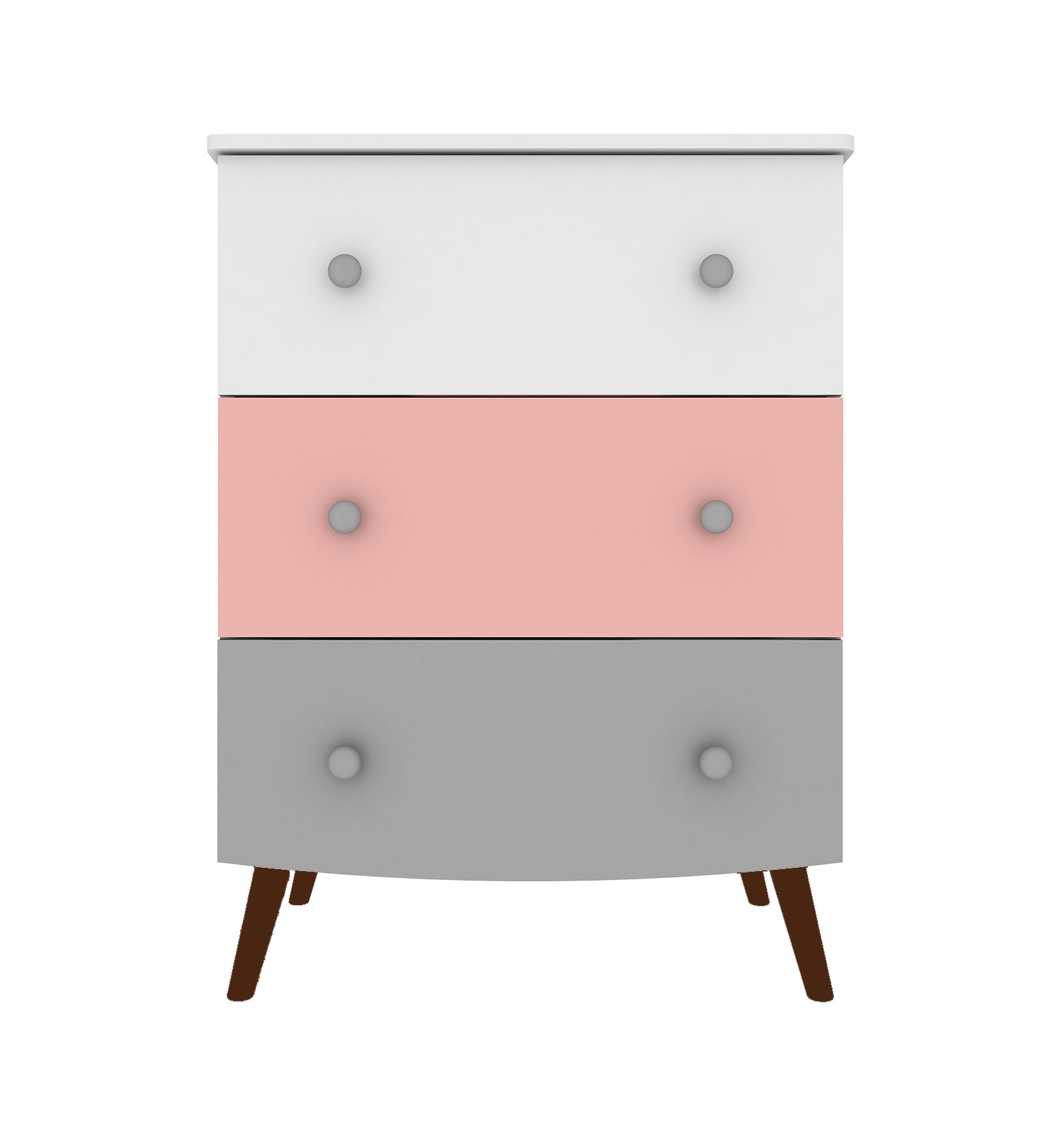 Son design associe les couleurs blanc, rose et gris, créant une atmosphère douce et accueillante, parfaite pour toute chambre d'enfant. Les poignées rondes en ton métallique ajoutent une touche d'élégance et de simplicité à l'ensemble, tandis que les pieds inclinés de style rétro renforcent son esthétique intemporelle et fraîche. Cette commode, qui fait partie de la ligne Ringo, est conçue pour s'adapter à divers styles de décoration, des plus modernes aux plus classiques, garantissant un équilibre entre fonctionnalité et style.